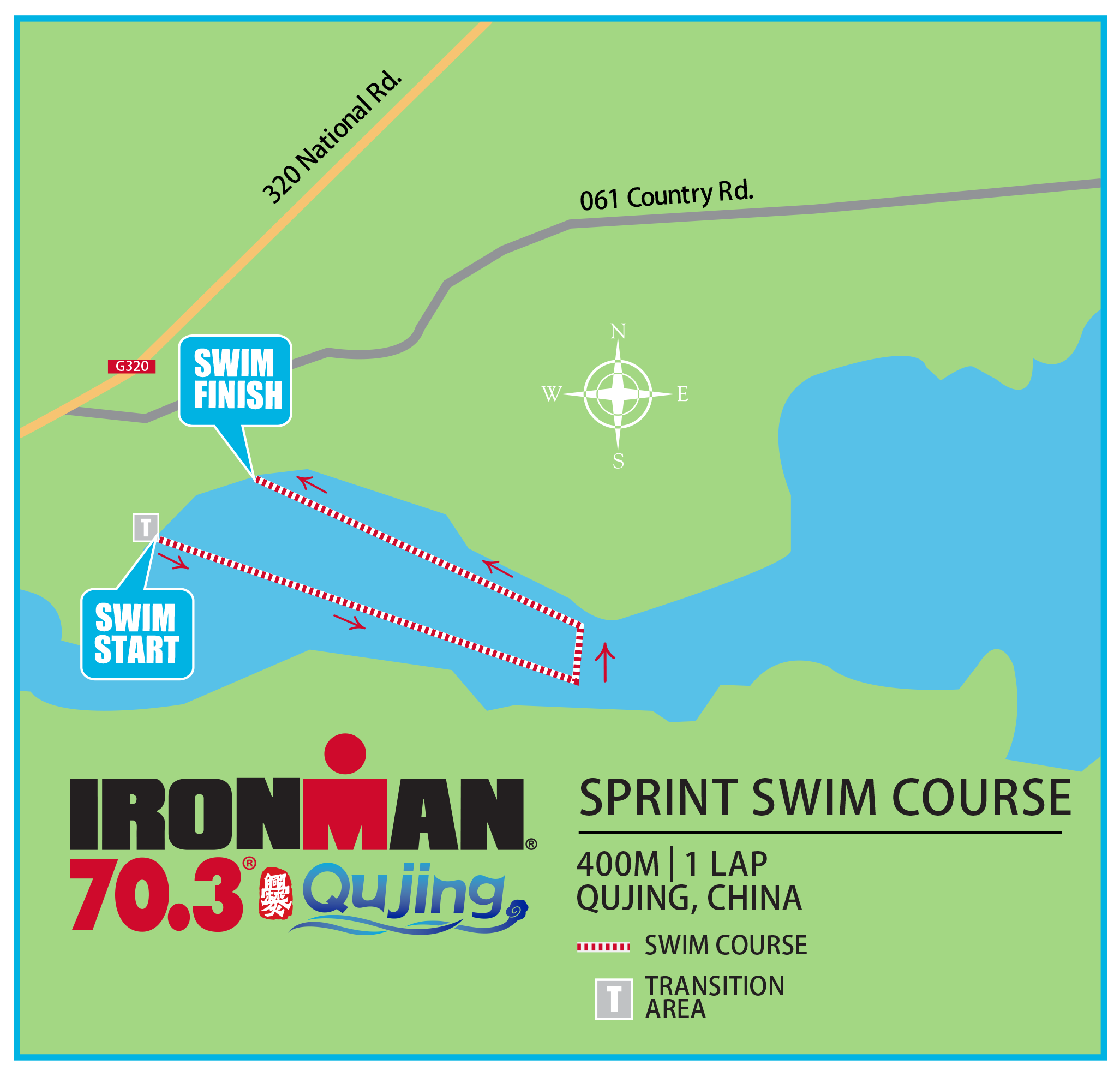 运动员需要在曲靖铁人三项体育公园完成一圈400米的公开水域游泳